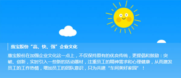 营造良好的“精神家园”,为每一位员工提供一个优质和谐的工作环境,一直都是杭州惠宝机电股份有限公司始终贯彻坚持的目标,因为他不仅有利于员工的身心健康,也有利于员工工作效率的提升。